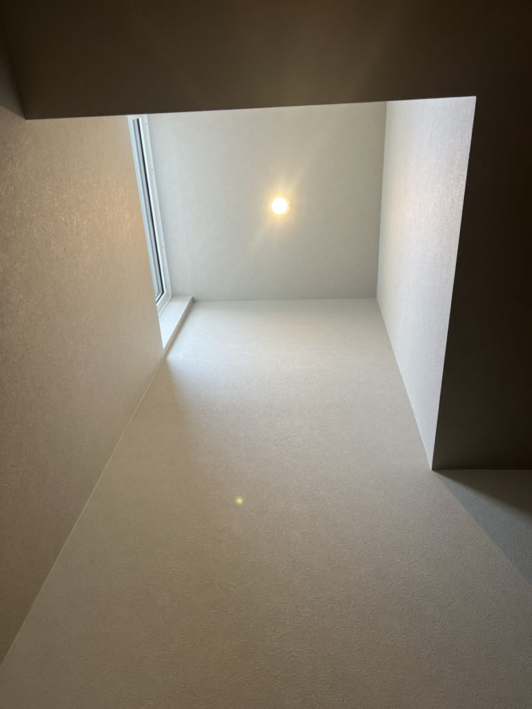 天井部分の一角を吹き抜けのようにし、側面に窓を取り入れることで直接日の光が入ってくるのではなく、反射した間接的な光が落ちるような仕組みとなっております。