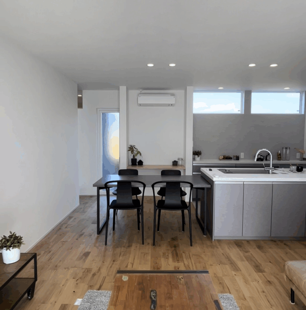 LDKを通らずに2階へ行ける階段動線で、子どもが自分の時間を過ごしやすいようにしたり、逆に1階部分はオープンな設計にしてお互いの気配を感じられる優しいつながりも確保したりと家族が自然体でいられる、思いやりの間取りです