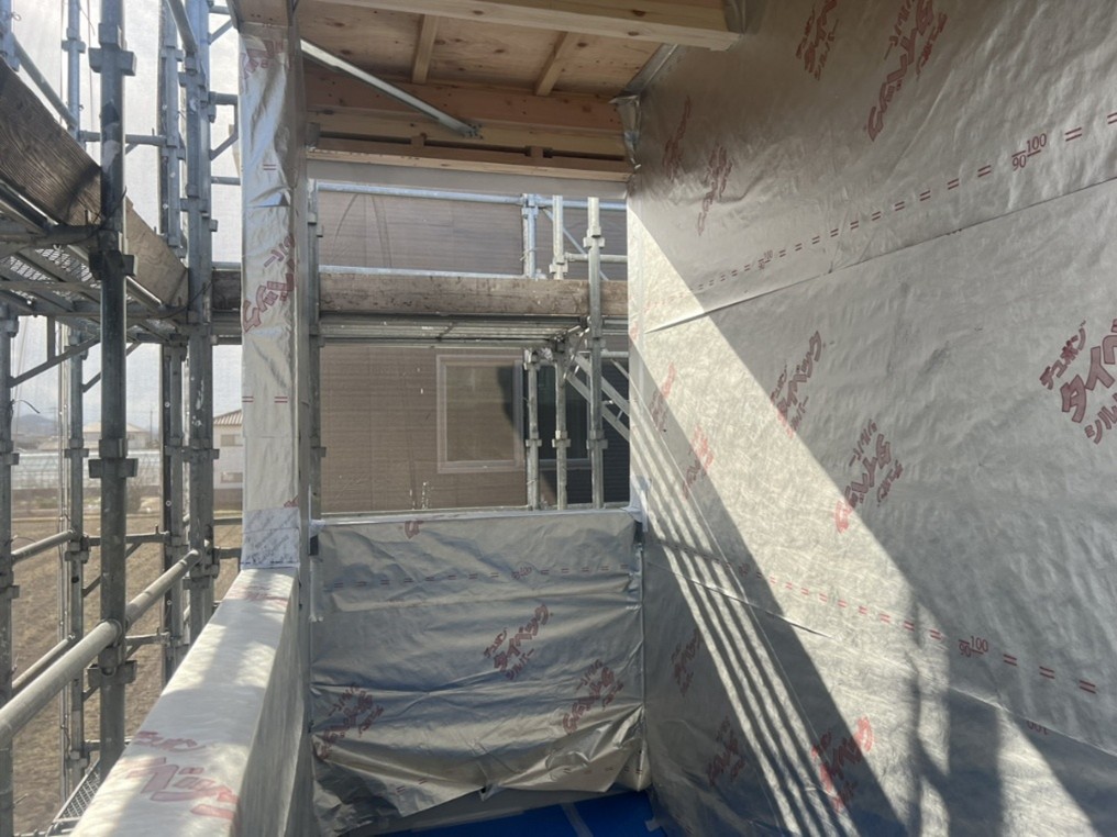 こちらは、年末前に上棟を行い約1か月経過している現場になります。