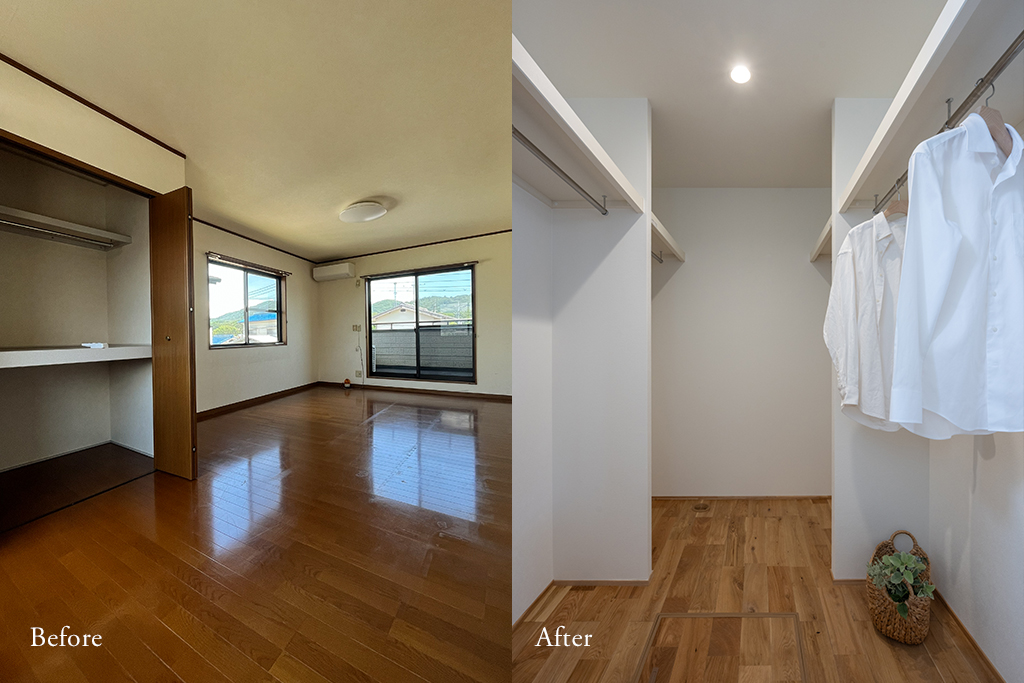 改修前の押し入れを見直し、ウォークインクローゼットを新設。収納量を増やしました。