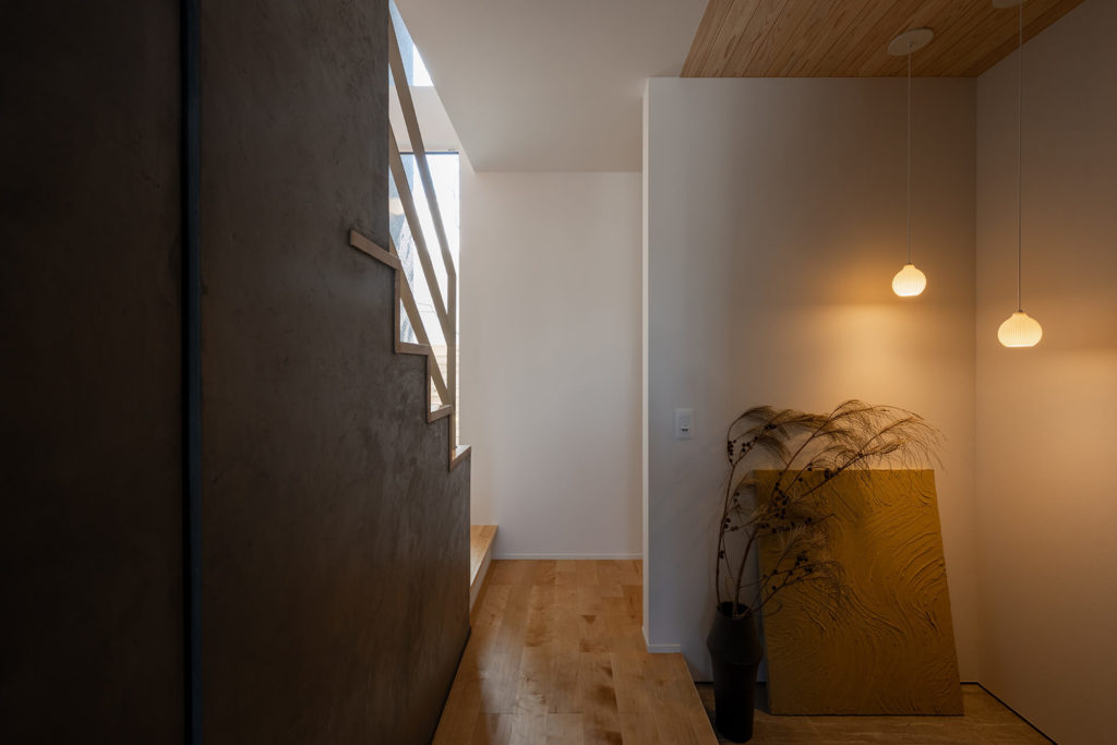 上下の移動に光と緑が寄り添い、住まいの奥行きを感じさせます。